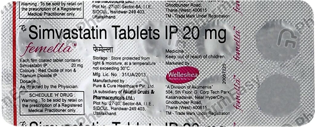 Femella tabletter indeholder det aktive stof simvastatin, som er et statin. Statiner virker ved at hæmme et enzym i leveren kaldet HMG-CoA-reduktase. Dette enzym er afgørende for kroppens produktion af kolesterol. Ved at blokere dette enzym reducerer simvastatin mængden af kolesterol, som leveren producerer. Dette fører til et fald i niveauet af LDL-kolesterol (Low-Density Lipoprotein), ofte kaldet "dårligt kolesterol", i blodbanen. LDL-kolesterol er den primære årsag til åreforkalkning (aterosklerose), hvor plak ophobes i arterierne og gør dem snævre og stive.