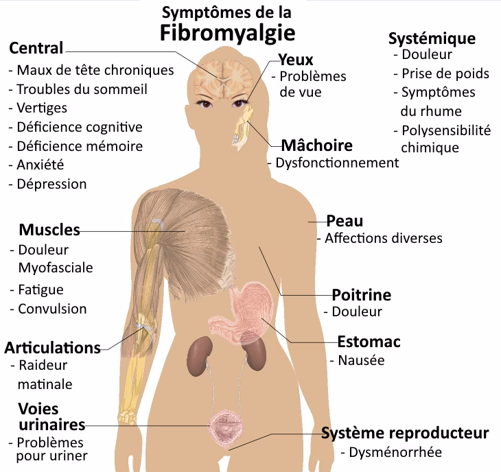 Symptombilledet ved fibromyalgi er bredt og kan variere meget fra person til person. De mest almindelige symptomer inkluderer: