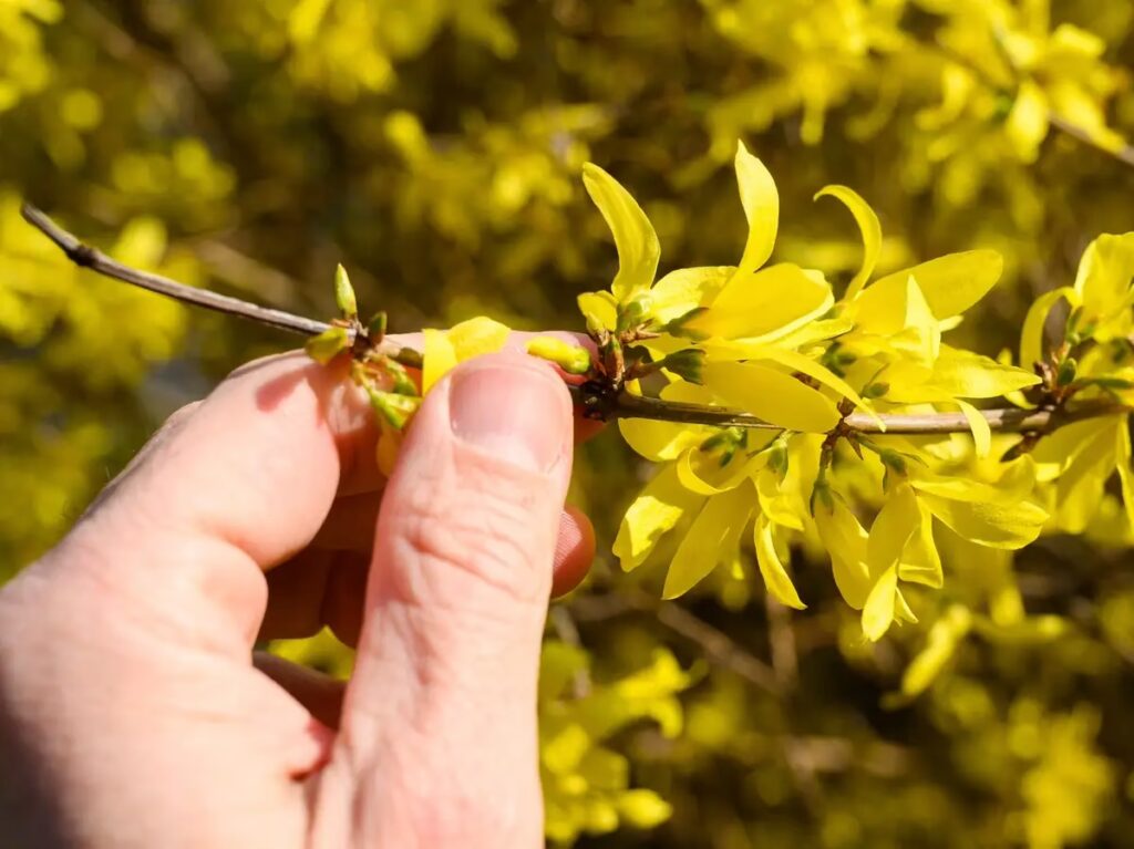 Enhver almindelig have-Forsythia, som f.eks. sorten *Forsythia x intermedia*, kan bruges. Det vigtigste er at sikre, at planten er sund og ikke har været udsat for pesticider eller forurening fra trafikerede veje.