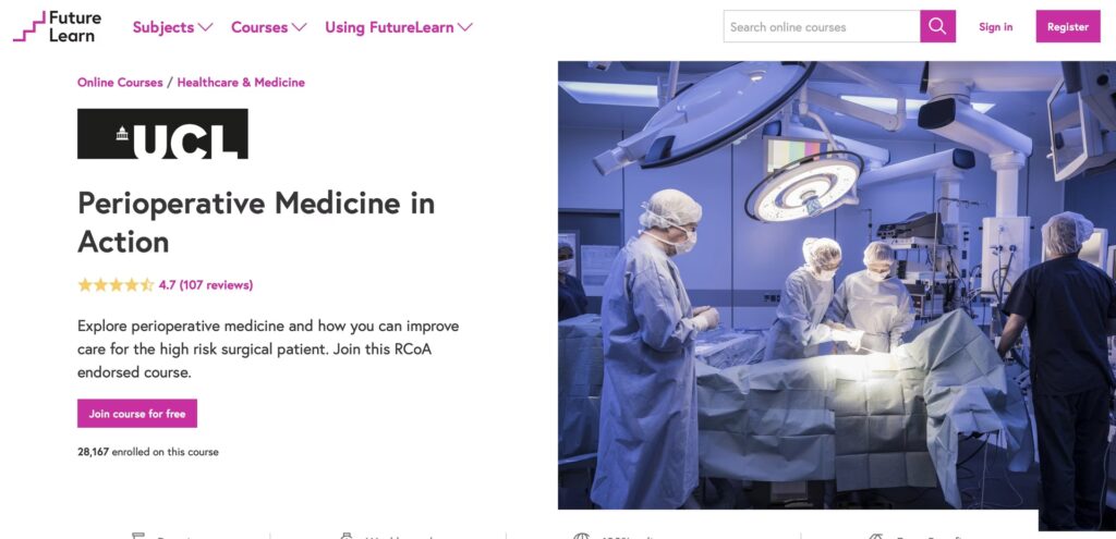 Online læringsplatforme og webbaserede kurser har vist sig at være en yderst effektiv og fleksibel måde at uddanne sundhedspersonale på, især for voksne lærende, der allerede er i job. Disse programmer kan kombinere teoretiske rammer, som f.eks. Patricia Benners "Fra Novice til Ekspert"-teori, med principper for voksenlæring for at skabe et stærkt fundament for fremtidens perioperative uddannelser. Et eksempel er det gratis onlinekursus (MOOC) udbudt af University College London (UCL), som er designet til en bred vifte af sundhedsprofessionelle. Sådanne kurser giver deltagerne en dybdegående forståelse for: