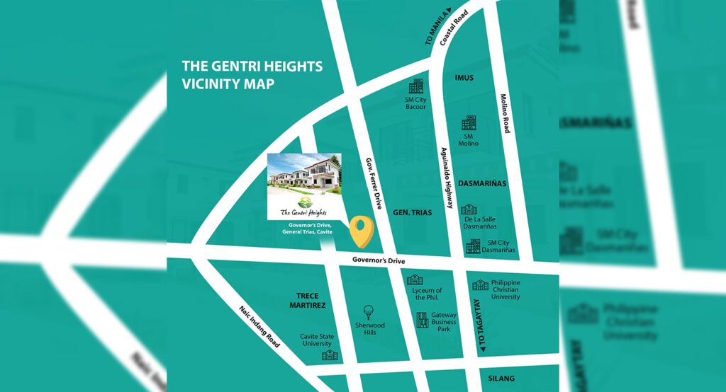 Gentri Heights er strategisk placeret langs Governor's Drive i den hastigt voksende by General Trias i Cavite-provinsen. Denne placering er ikke tilfældig. Cavite er kendt som en af de hurtigst voksende økonomier i det sydlige Luzon, primært på grund af sin tætte nærhed til Metro Manila. Dette har tiltrukket betydelige investeringer, hvilket har ført til etableringen af adskillige kommercielle og industrielle parker i området. For beboerne i Gentri Heights betyder det, at alt, hvad man behøver, er inden for kort rækkevidde.