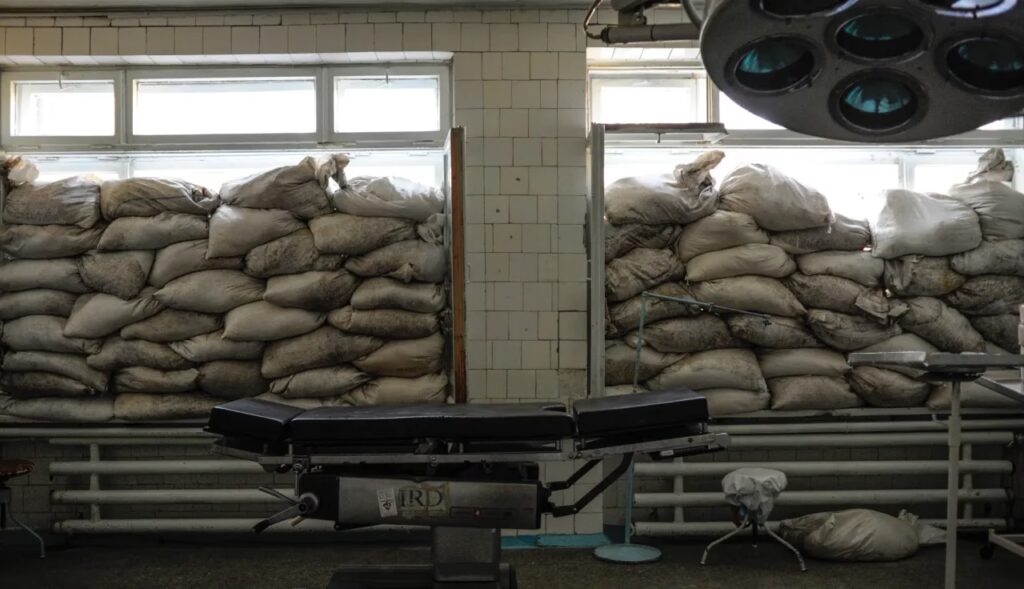 Som udgangspunkt, nej. Hospitaler er beskyttede. Beskyttelsen kan kun ophøre, hvis hospitalet bruges til at begå "skadelige handlinger" mod fjenden. Selv da skal der gives en advarsel med en tidsfrist, og ethvert angreb skal være proportionalt og skelne mellem kombattanter og civile.