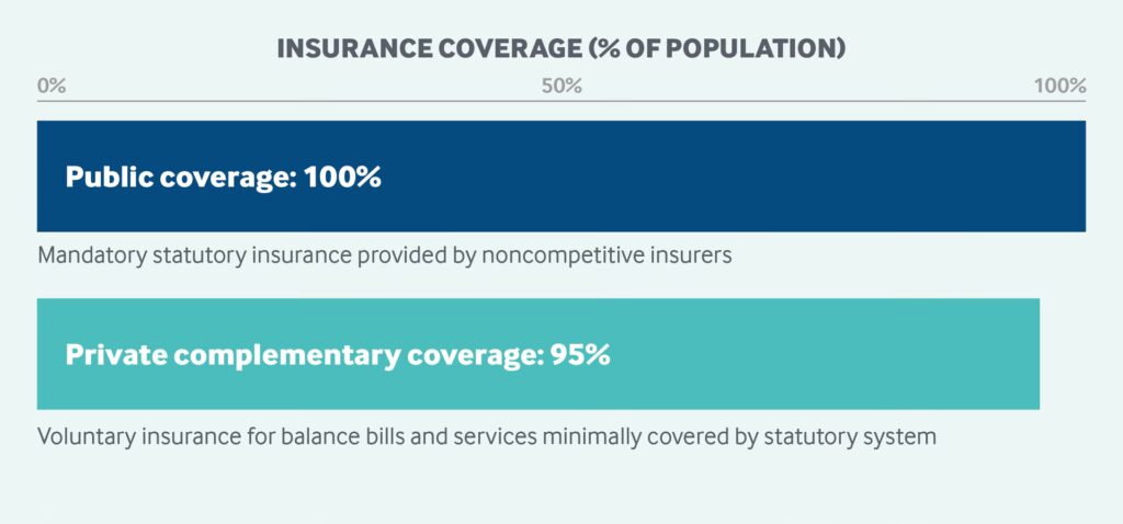 Da det offentlige system typisk kun dækker omkring 70% af udgifterne, vælger de fleste franskmænd at tegne en supplerende privat sundhedsforsikring, kendt som en mutuelle. Denne forsikring dækker de resterende 30% (kendt som 'ticket modérateur') og kan også dække de ekstra honorarer, som Sektor 2-læger opkræver. En mutuelle er afgørende for at undgå store egenbetalinger, især ved tandbehandling, briller og hospitalsindlæggelse.