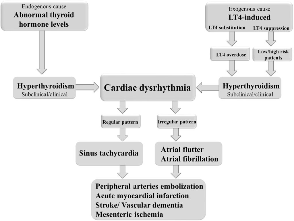 - Atrieflimren (AFib): Dette er en mere alvorlig tilstand, hvor hjertets forkamre (atrier) slår kaotisk og uregelmæssigt. Langvarig overbehandling med levothyroxin, især hos ældre, har vist sig at øge risikoen for at udvikle atrieflimren. Denne tilstand er bekymrende, da den øger risikoen for blodpropper og slagtilfælde markant.