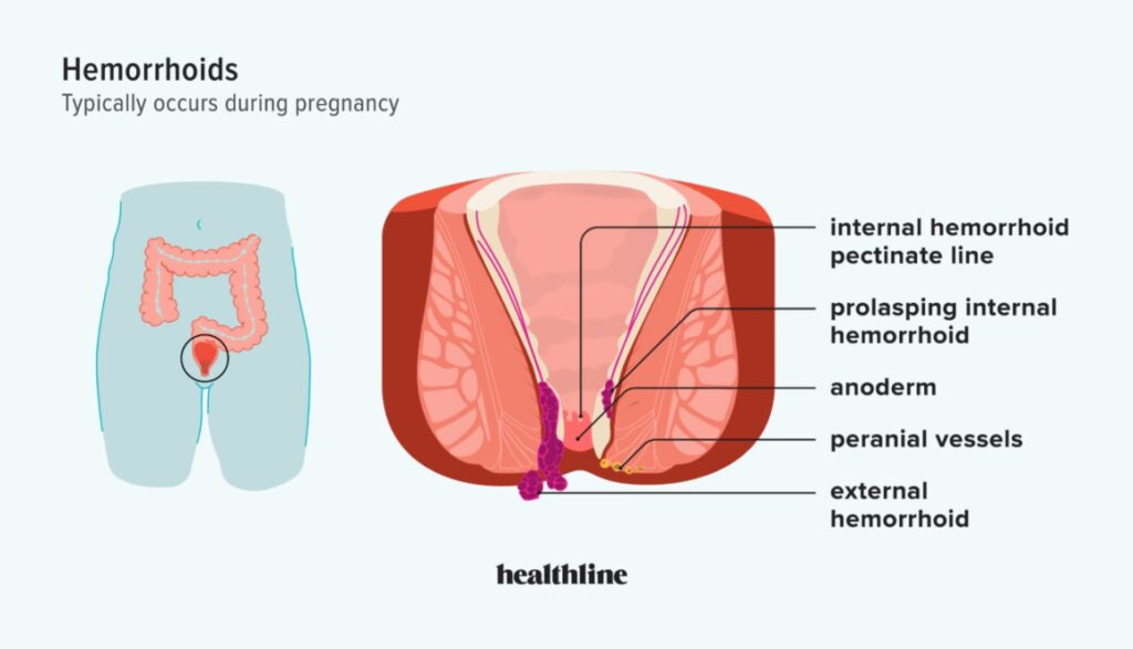 Yes. If you’re pregnant and have hemorrhoids, you’re not alone. Hemorrhoids during pregnancy are common, especially in the third trimester and up to one month after you’ve had your baby. About 30% to 40% of pregnant women get hemorrhoids. What is the difference between hemorrhoids and anal fissures? Hemorrhoids are swollen veins on your anus.