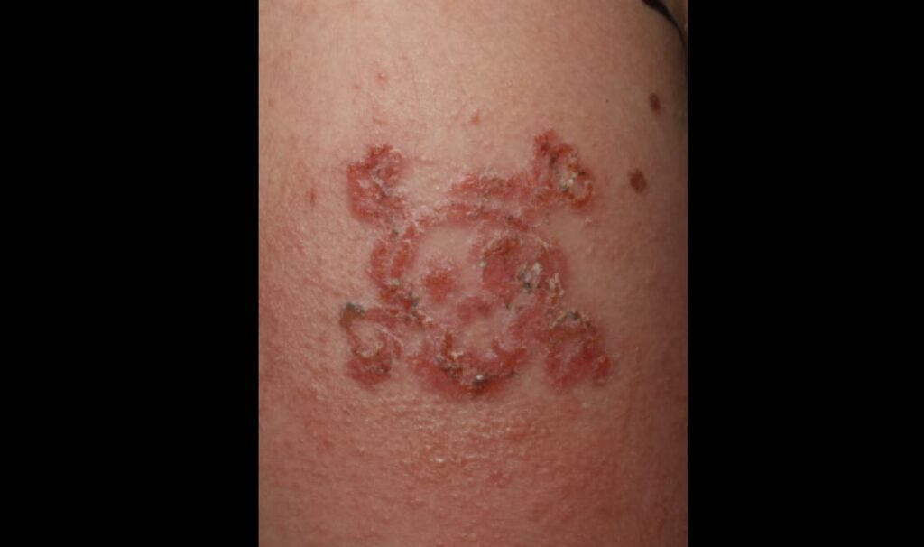 - Kraftig rødme og hævelse, der følger tatoveringens mønster.