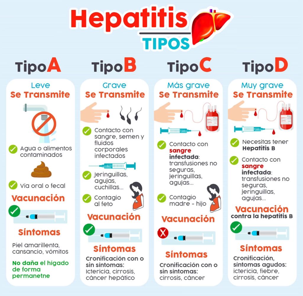 - De virale typer (A, B, C, D, E) er smitsomme, men de smitter på forskellige måder. Hepatitis, der er forårsaget af alkohol, medicin eller autoimmune lidelser, er ikke smitsom og kan ikke overføres fra person til person.