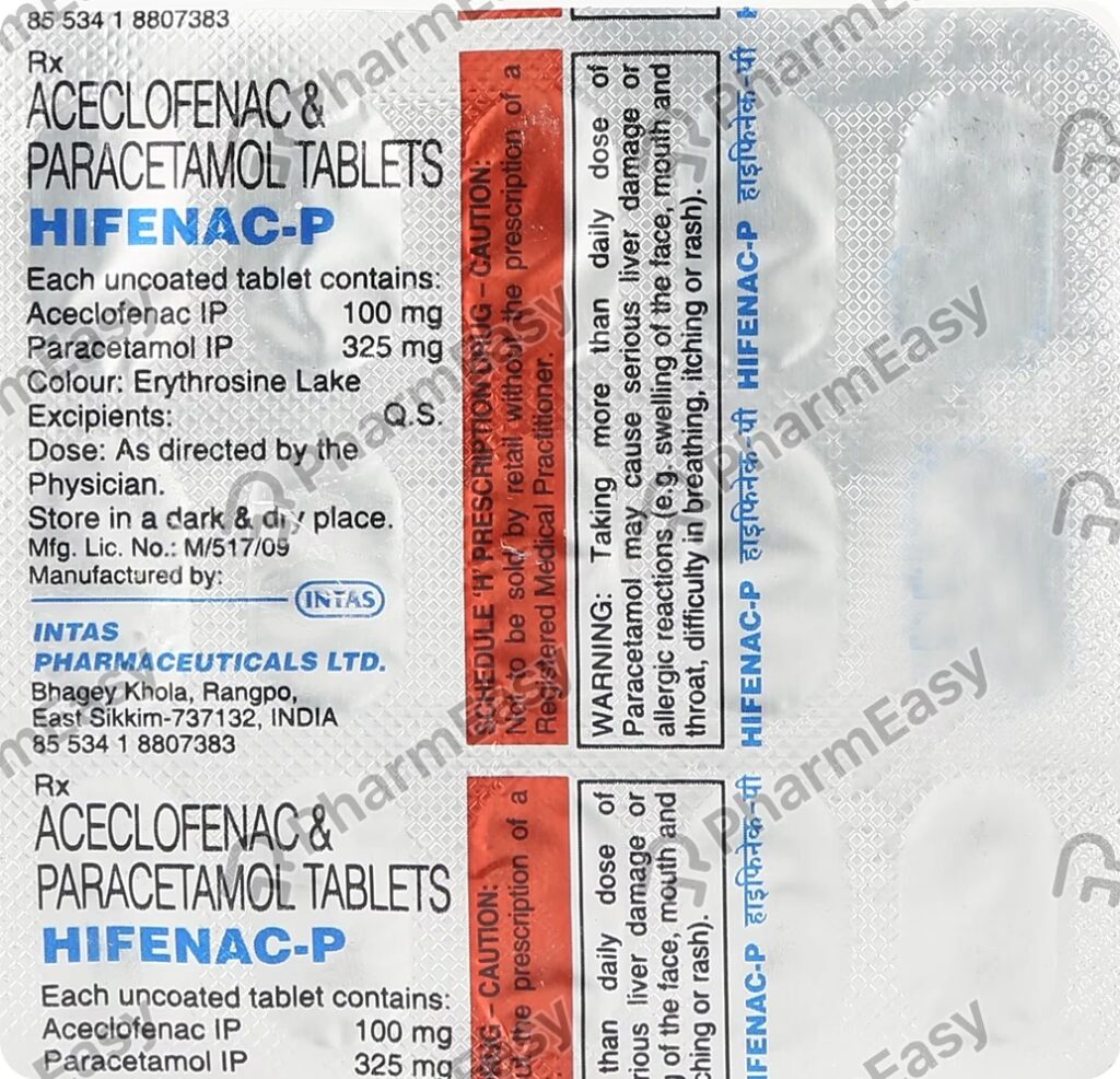 Hifenac P Tablet should be used with caution in individuals with kidney-related conditions and liver diseases. Hifenac P Tablet is useful in relieving pain and swelling associated with bones and joints in conditions such as arthritis, spondylitis and low back pain.