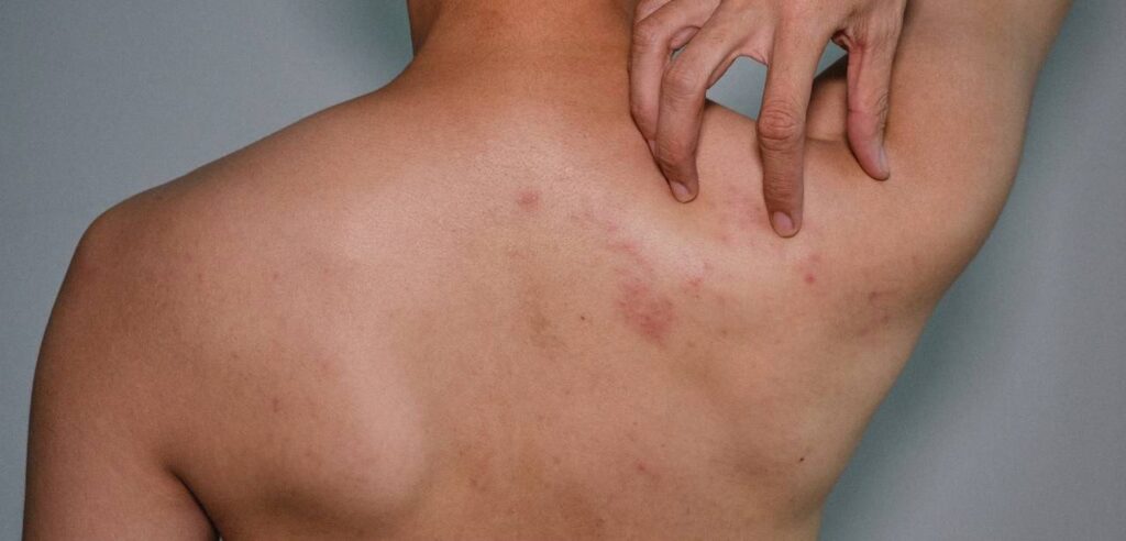 - Hudreaktioner: Pludselig rødme i ansigtet og på brystet (flush), kløe, nældefeber (urticaria), eksem og hævede øjenlåg.
