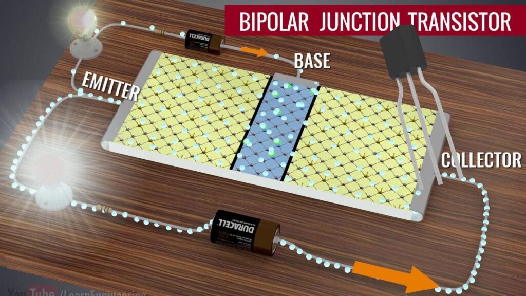Den mest almindelige type transistor er den bipolære junction transistor, eller BJT. Forestil dig en sandwich lavet af tre lag silicium, enten i en n-p-n konfiguration (et lag p-type mellem to lag n-type) eller p-n-p. Lad os fokusere på n-p-n modellen, som er den mest udbredte.