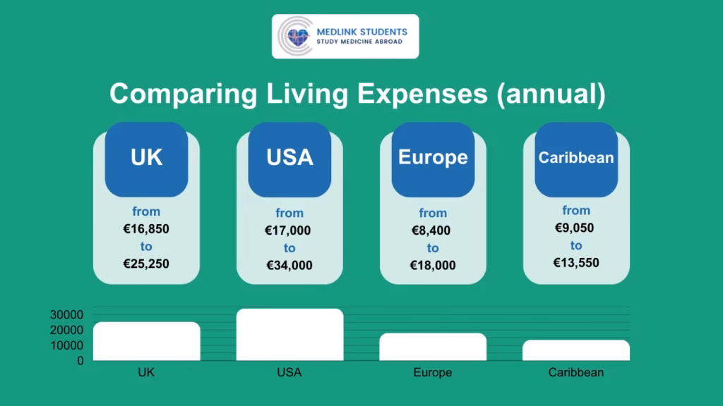 Universiteterne fastsætter selv deres priser for internationale studerende, og de kan variere markant. Typisk ligger den årlige studieafgift for medicin for internationale studerende i spændet: