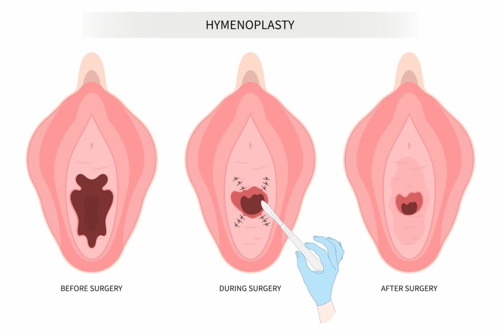 - Kulturelt og religiøst pres: I visse kulturer og religioner lægges der stor vægt på kvindens jomfruelighed indtil bryllupsnatten. En blødning ses som et bevis på hendes "renhed". Kvinder, der ikke længere er jomfruer, kan føle et enormt pres og frygt for sociale konsekvenser, hvilket leder dem til at søge en kirurgisk løsning.