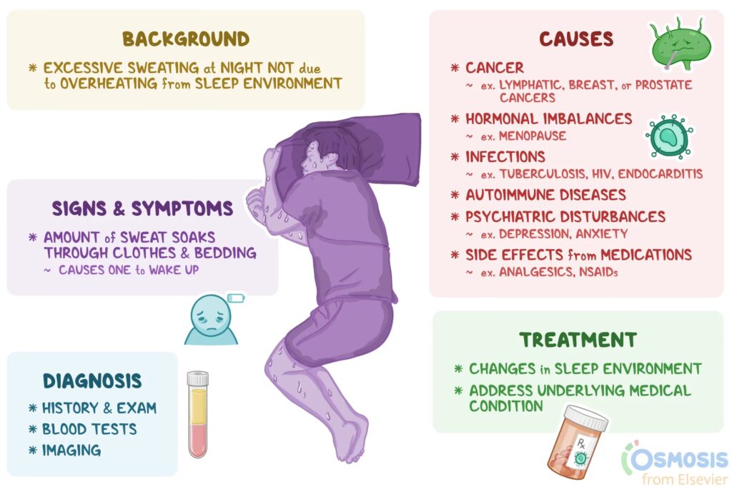 - Infektioner og andre sygdomme: Visse infektioner, neurologiske lidelser og kræftformer kan også have nattesved som et symptom.