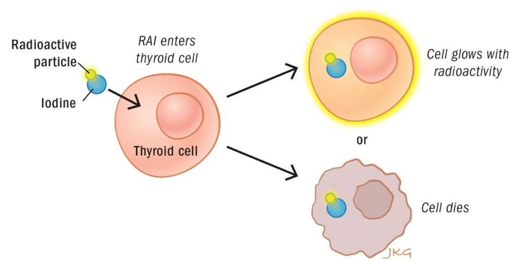 At forsøge at finjustere en dosis radioaktivt jod til præcist at normalisere funktionen er ekstremt vanskeligt. Selv hvis det lykkes i en periode, vil mange patienter alligevel udvikle hypothyreose over tid, da strålingen gradvist ødelægger kirtelcellerne. Desuden er der en betydelig risiko for, at hyperthyreosen vender tilbage, hvis man ikke er tilstrækkeligt aggressiv i behandlingen. Ved at sigte direkte mod hypothyreose, kan lægerne hurtigt og effektivt fjerne problemet med det forhøjede stofskifte og derefter starte en simpel og sikker erstatningsbehandling med levothyroxin, en daglig pille, der erstatter det manglende stofskiftehormon.