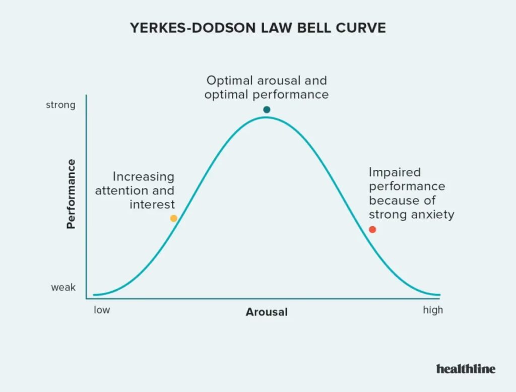 - Komplekse eller finmotoriske opgaver: Opgaver, der kræver høj koncentration, præcision og finmotorik, som f.eks. kirurgi, snookerspil, skak eller eksamenslæsning, udføres bedst ved et lavere arousal-niveau. For meget pres kan forstyrre den fine koordination og det klare fokus, der er nødvendigt.