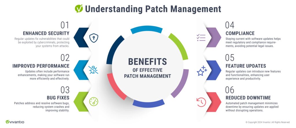 - Kompatibilitet: Efterhånden som teknologien udvikler sig, kan nyere versioner af software og hardware kræve de seneste patches for at sikre, at de fungerer problemfrit sammen. Patching hjælper med at opretholde kompatibilitet med andre systemer og applikationer.