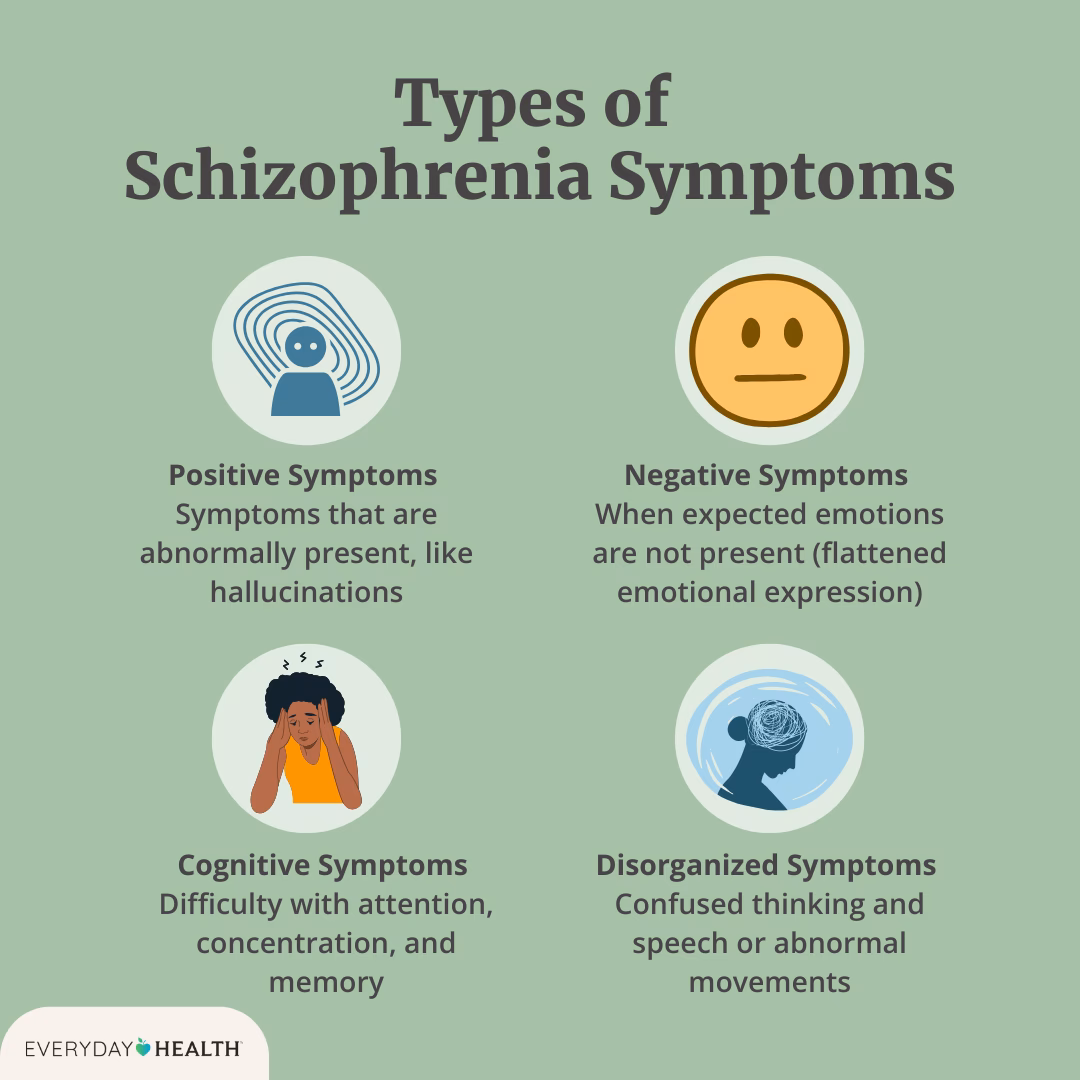 Skizofreni er kendetegnet ved betydelige forstyrrelser i virkelighedsopfattelsen og adfærdsændringer. Symptomerne kan variere meget fra person til person, men de inddeles ofte i tre hovedkategorier: positive, negative og kognitive symptomer.