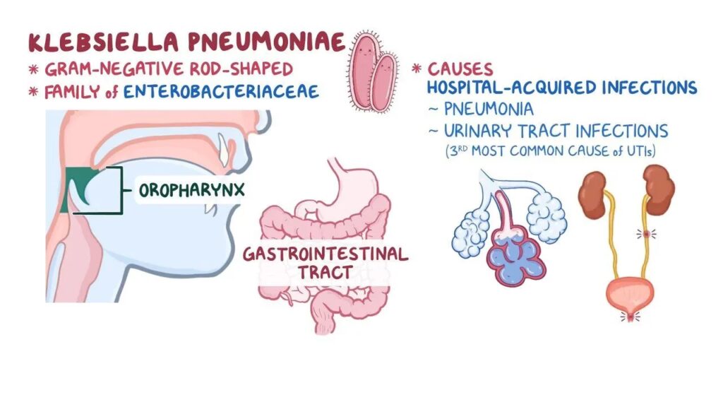 Klebsiella pneumoniae er en type gramnegativ bakterie, der normalt findes i menneskers tarmsystem og på huden uden at forårsage sygdom. Den tilhører den samme familie som E. coli og betragtes som en del af den normale tarmflora. Problemet opstår, når bakterien spreder sig til andre dele af kroppen, hvor den ikke hører hjemme, såsom urinvejene, lungerne eller blodbanen. Her kan den blive en opportunistisk patogen, hvilket betyder, at den udnytter en svækkelse i kroppens forsvar til at forårsage en infektion. Især personer med et svækket immunforsvar, ældre, spædbørn og patienter med kroniske sygdomme eller dem, der har fået indsat medicinsk udstyr som et urinkateter, er i øget risiko.