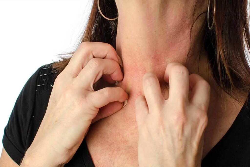 - Rødme og udslæt: Huden kan blive rød, irriteret og udvikle et eksemlignende udslæt.