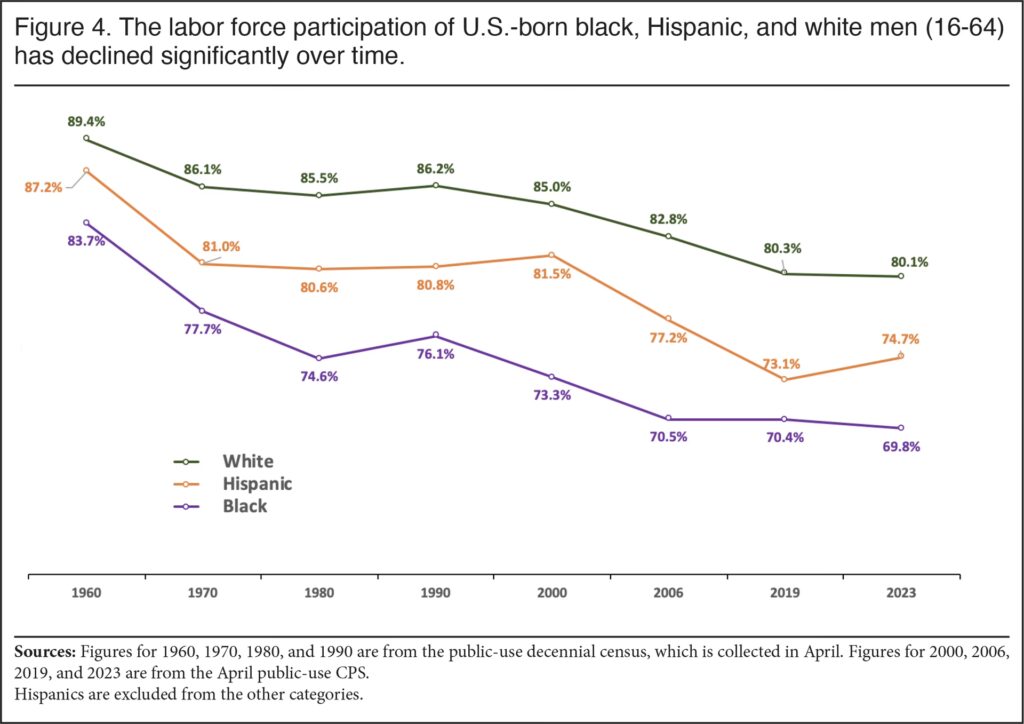 Da ældre amerikanere – og europæere – historisk set har en lavere sandsynlighed for at være i arbejde sammenlignet med yngre grupper, trak dette store demografiske skift den samlede gennemsnitlige deltagelsesprocent ned. Det er et klassisk eksempel på, hvordan en ændring i befolkningens sammensætning kan maskere underliggende tendenser. Selvom en 70-årig i dag er mere tilbøjelig til at arbejde end en 70-årig var for 20 år siden, er der nu simpelthen så mange flere 70-årige, at det påvirker det samlede billede.