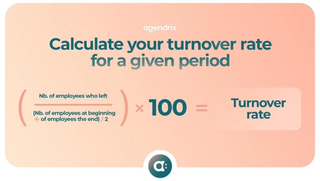 Derefter beregnes selve omsætningsraten ved at dividere antallet af fratrådte medarbejdere med det gennemsnitlige antal medarbejdere og gange med 100 for at få en procentdel: