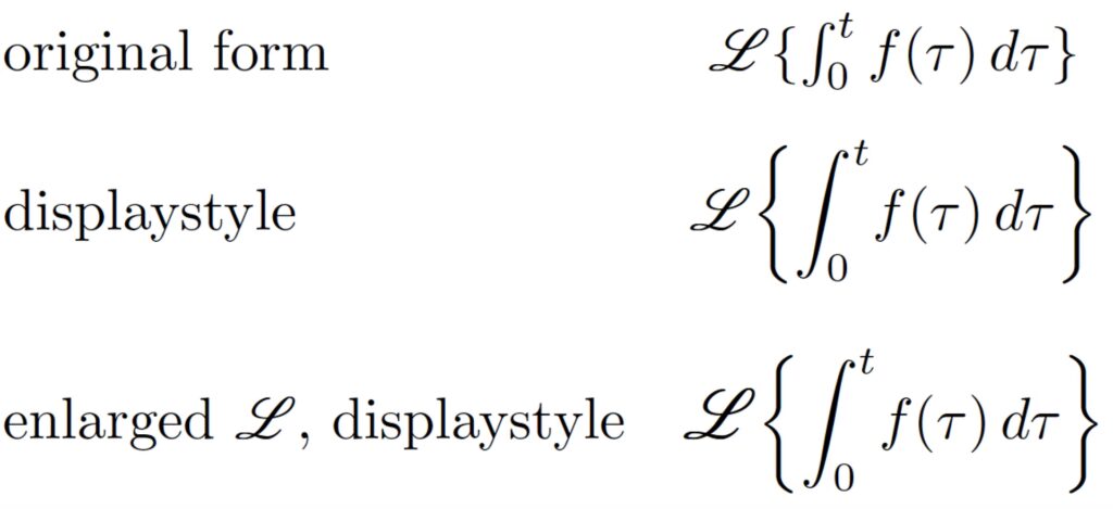 The Laplace transform symbol in LaTeX can be obtained using the command \mathscr {L} provided by mathrsfs package The above semi-infinite integral is produced in LaTeX as follows: 3. Another version of Laplace symbol Some documents prefer to use the symbol L{f(t)} L {f (t)} to denote the Laplace transform of the function f(t) f (t).