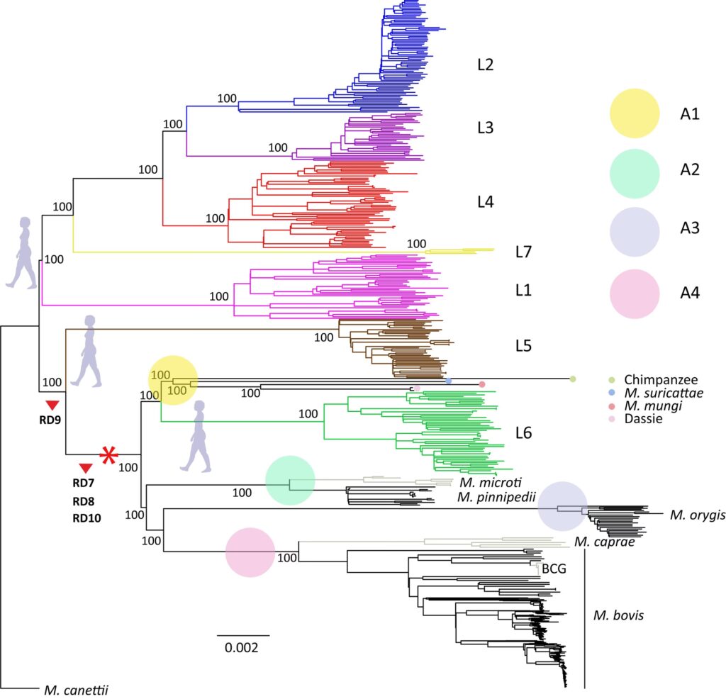 - Linje 6: Vestafrikansk 2 (M. africanum)