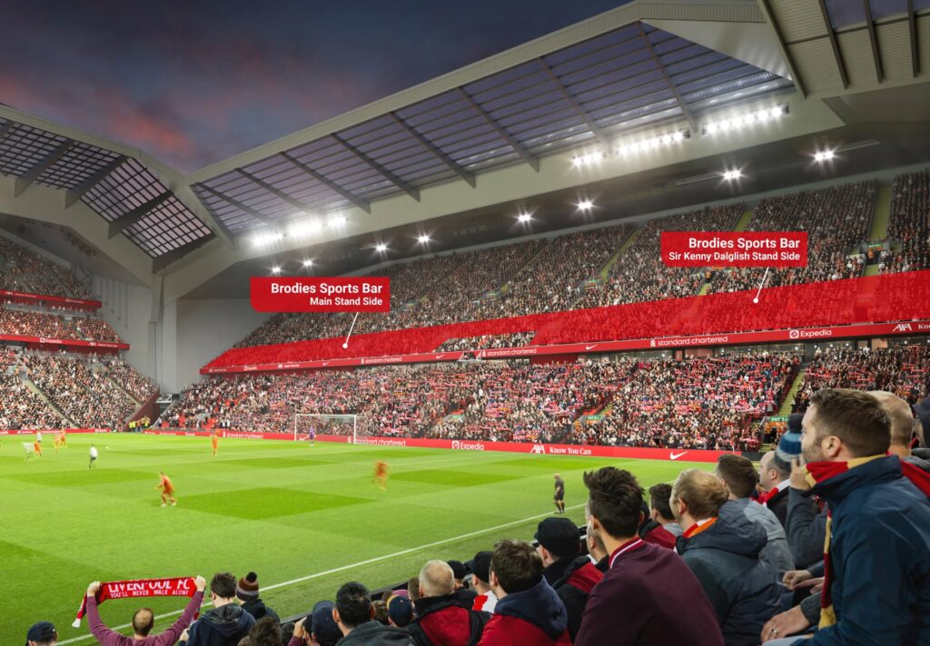 | Brodies Lounge | Anfield Road Stand (AM1-AM8) | Gratis street food før kampen, 1 gratis drink i pausen | Moderne og fleksibel | Fans, der ønsker at vælge deres egen udsigt og komfortniveau |