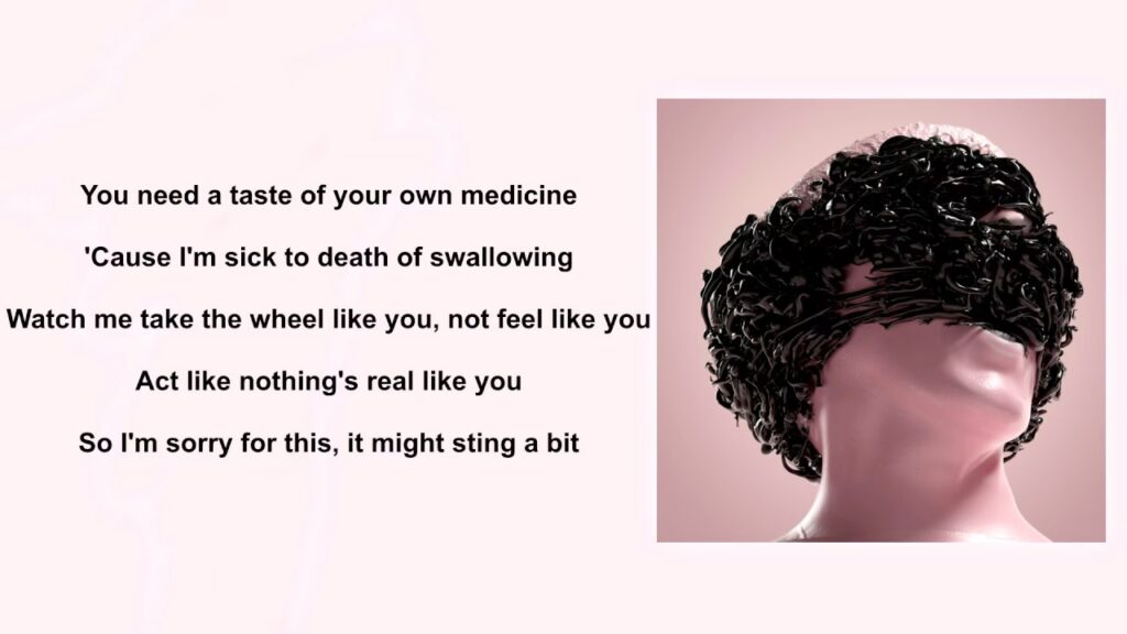 I sangen er 'medicin' ikke et farmaceutisk produkt, men derimod den befriende handling at fjerne en person, der konstant bringer negativitet og smerte ind i ens liv. Teksten taler om, hvordan nogle mennesker er som "skyer", der følger efter en og blokerer for solen. At give dem "en smag af deres egen medicin" handler ikke om hævn, men om at sætte en stopper for deres indflydelse. Det handler om at sige fra og nægte at lade sig trække ned længere. Denne form for selvbeskyttelse er en af de mest potente former for mental medicin, vi kan administrere.