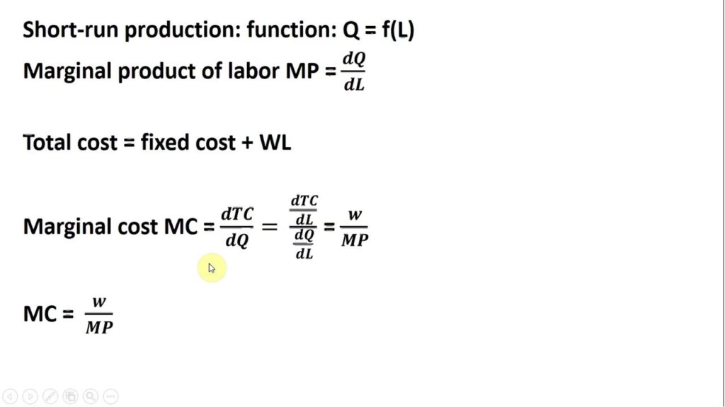 Den samlede omkostning er summen af faste omkostninger og variable omkostninger. Marginalomkostningen beregnes som ændringen i de samlede omkostninger (eller mere specifikt, de samlede variable omkostninger) divideret med ændringen i mængden af produceret output. Forståelsen af disse omkostningstyper, sammenholdt med marginalproduktet, giver ledelsen et klart billede af, hvordan hver ekstra produceret enhed påvirker bundlinjen.