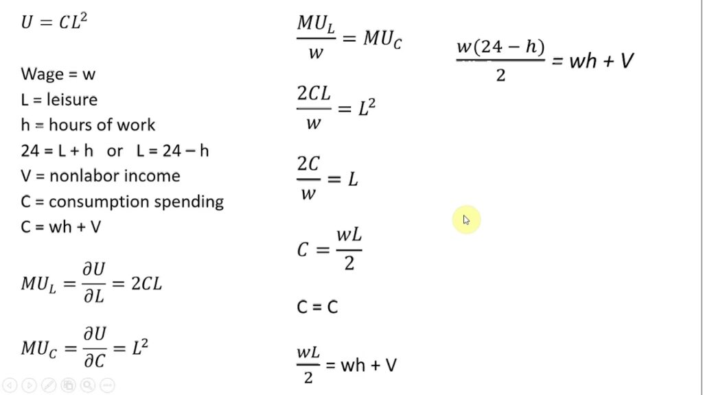 Den økonomiske teori siger, at en person vil vælge at arbejde det antal timer, hvor den marginale nytte af lønnen er lig med den marginale unytte af arbejdet. Man kan ikke direkte sammenligne en pengeværdi (løn) med en følelse (unytte). I stedet ser man på det i forbrugsenheder. Grænsenytteomkostningerne ved arbejde beregnes ved at dividere den marginale unytte af arbejde med den marginale nytte af forbrug. Denne betingelse sidestiller derfor grænsenytteomkostningerne ved arbejde med lønnen.