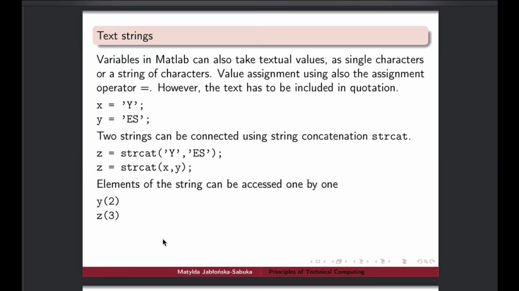 Som nævnt i din information, bruges apostrof i MATLAB også til at definere tegn-arrays (char arrays), som var den primære måde at håndtere strenge på før R2016b. For eksempel myString = 'Dette er en tekst';. Det er vigtigt at skelne mellem denne brug (at definere en værdi) og brugen som en post-fix operator på en variabel (M'), der udfører en matematisk handling. Konteksten gør det altid klart, hvilken af de to der er i spil.