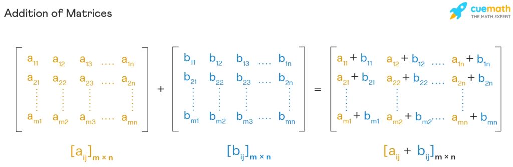 2. Addition og Subtraktion: Hvis to matricer A og B har de samme dimensioner, kan de adderes eller subtraheres. Summen A + B og differencen A - B er matricer, hvor hvert element er summen eller differencen af de tilsvarende elementer i A og B.