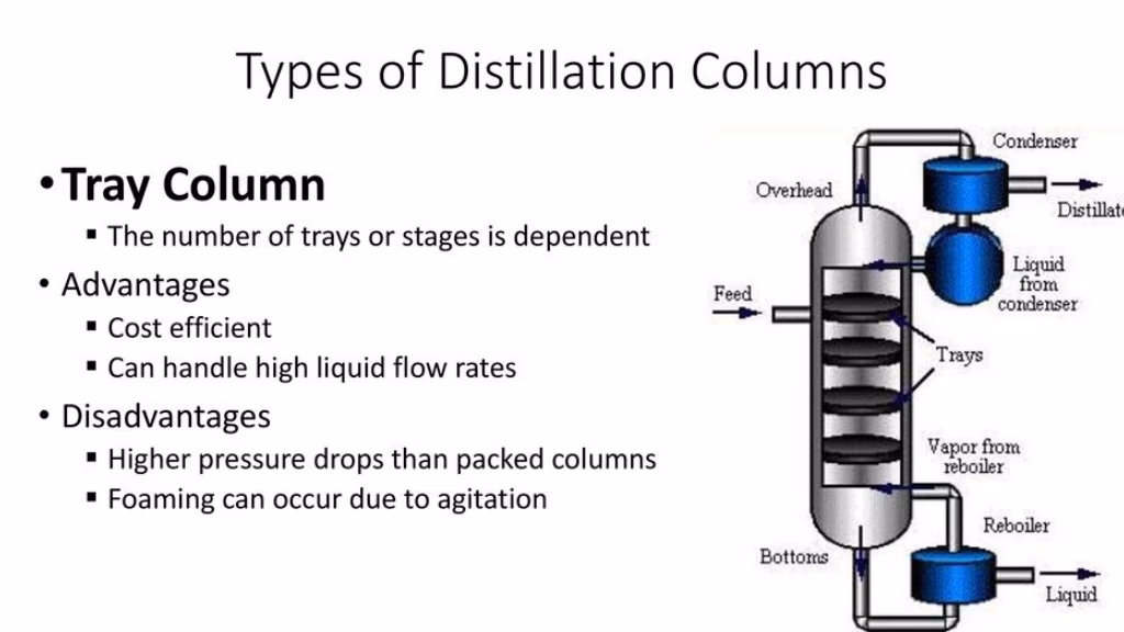 For at opnå den påkrævede høje renhedsgrad (ofte over 99.85%) er en simpel destillation ikke tilstrækkelig. Derfor anvendes ofte systemer med flere destillationskolonner i serie. Et typisk tre-kolonne system kan være designet til at håndtere specifikke separationsopgaver: