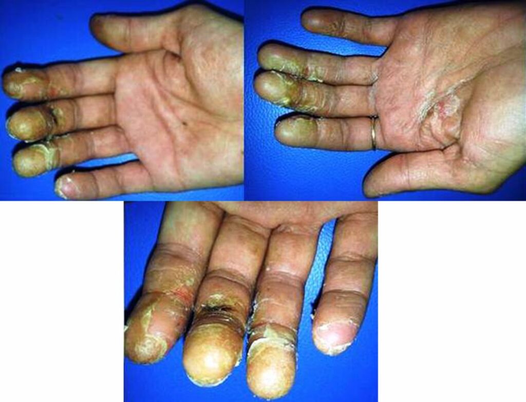- Vesikler og blærer: Små, væskefyldte blærer kan opstå, især på fingrene.