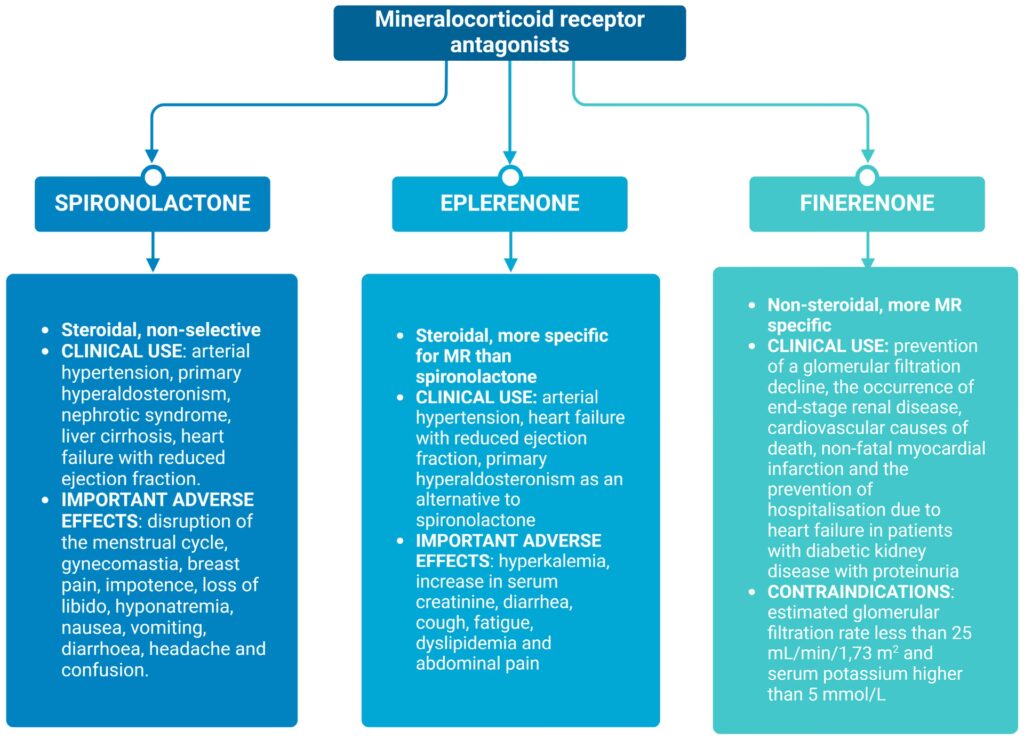 Nedenfor er en oversigt over nogle af de mest almindelige lægemidler, der interagerer med mineralkortikoid-systemet.