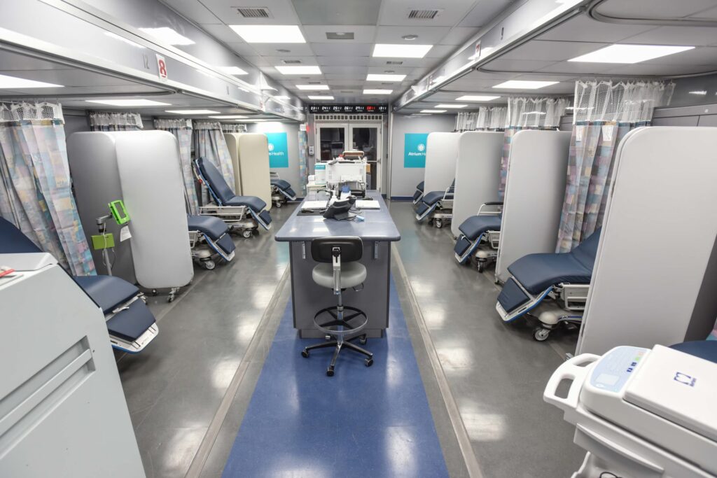 - Høj Kvalitetspleje: Interiøret er designet til at opfylde de samme standarder som et permanent hospital med medicinsk godkendte overflader, avanceret medicinsk udstyr og systemer til infektionskontrol.