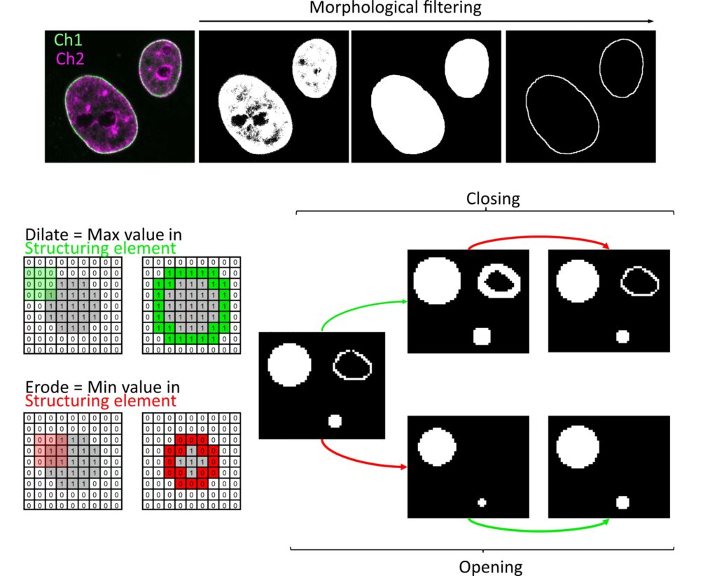 Kernen i enhver morfologisk operation er det strukturerende element. Man kan forestille sig det som en lille matrix eller skabelon, der bevæges hen over hele billedet, pixel for pixel. Dette element har sin egen definerede form og størrelse, som dikterer resultatet af operationen. De mest almindelige former er firkanter, cirkler og krydser, men i princippet kan enhver form anvendes. Valget af det strukturerende elements størrelse og form er afgørende for, hvilke detaljer i billedet der fremhæves eller undertrykkes.