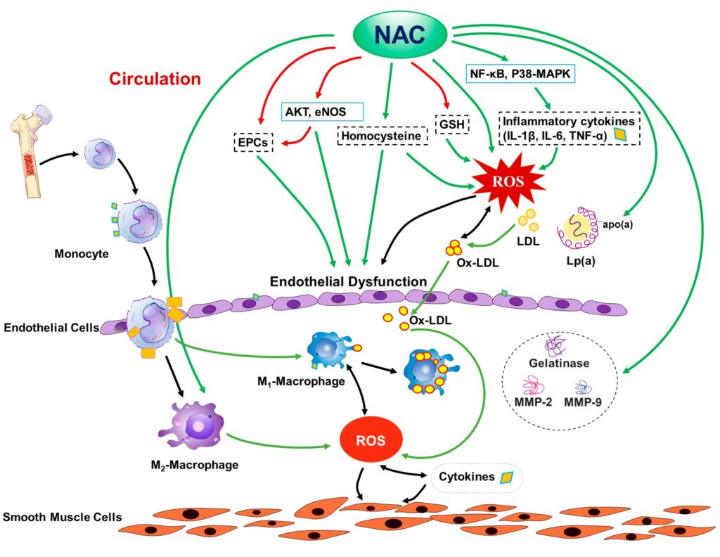 Udover sin antioxidant-effekt har NAC også andre interessante egenskaber, såsom at være let blodfortyndende (antiplatelet) og at kunne udvide blodkarrene (vasodilatorisk), hvilket kan forbedre metabolismen af nitrogenoxid – et vigtigt molekyle for blodkarrenes sundhed.
