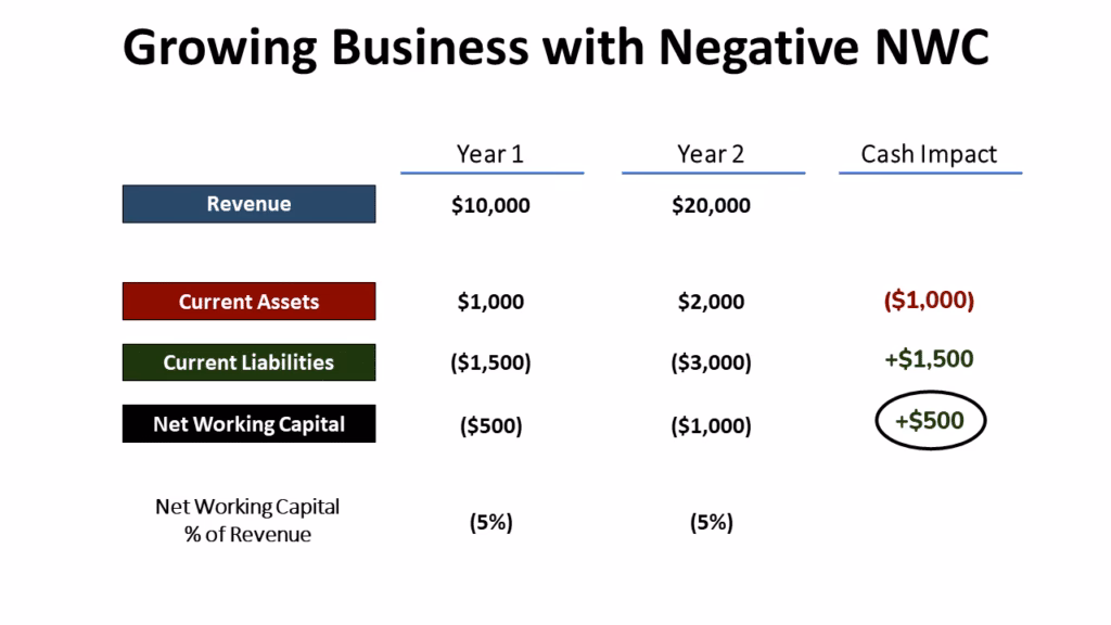 Omvendt, hvis en virksomhed skal betale sine leverandører hurtigt, men kæmper med at få betaling fra sine kunder, er negativ arbejdskapital et alvorligt faresignal. Pengestrømmen er negativ, og det kan lamme de daglige operationer.