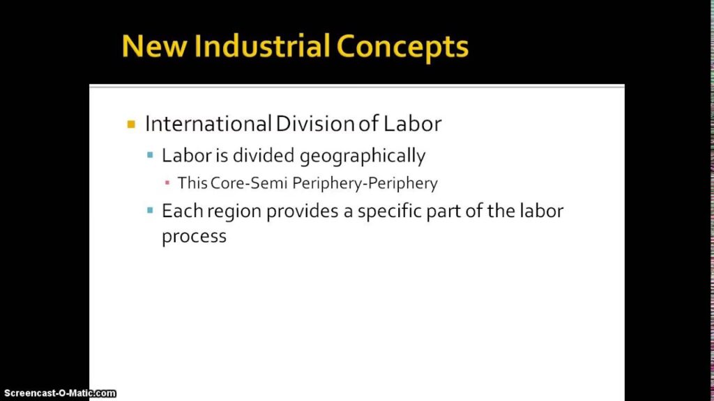 Tabellen nedenfor illustrerer nogle af de generelle forskelle i arbejdsforhold, som den nye internationale arbejdsdeling har medført.