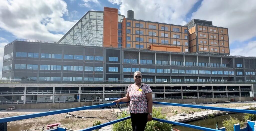 - Lys og Natur: Bygningerne er designet med store vinduespartier for at maksimere dagslysindfaldet. Der er udsigt til grønne områder, og der er etableret gårdhaver og tagterrasser, som giver patienter og pårørende adgang til frisk luft og natur.