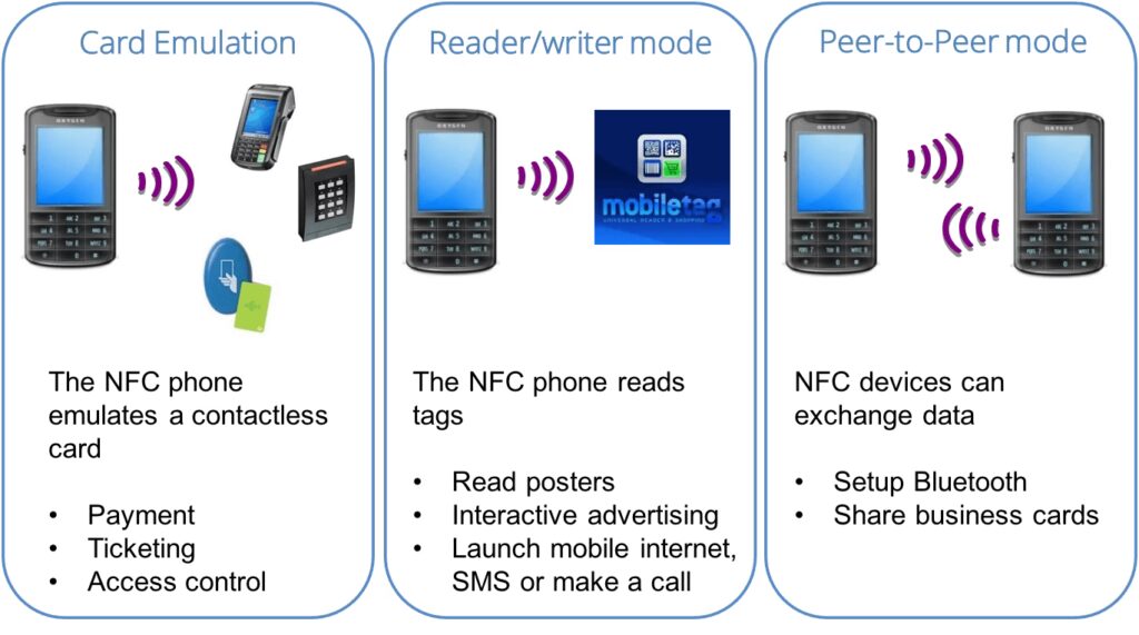 NFC-teknologien kan operere i tre forskellige tilstande, hvilket giver den stor fleksibilitet: