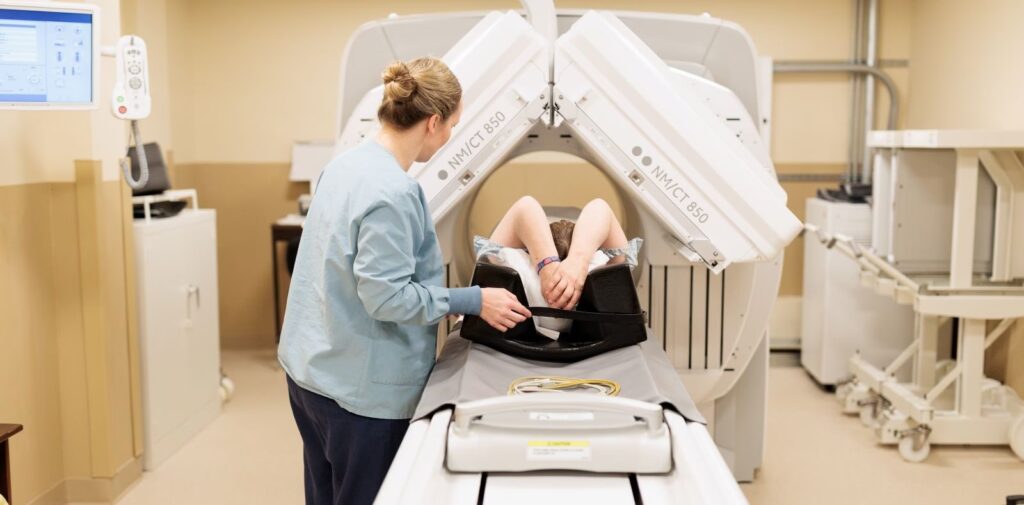 En afdeling for nuklearmedicin og PET-centre er et højt specialiseret miljø på et hospital, hvor disse avancerede undersøgelser udføres. Her kombineres ekspertise inden for medicin, fysik, kemi og teknologi for at levere funktionel billeddannelse. De to mest almindelige teknikker er SPECT (Single Photon Emission Computed Tomography) og PET (Positron Emission Tomography).