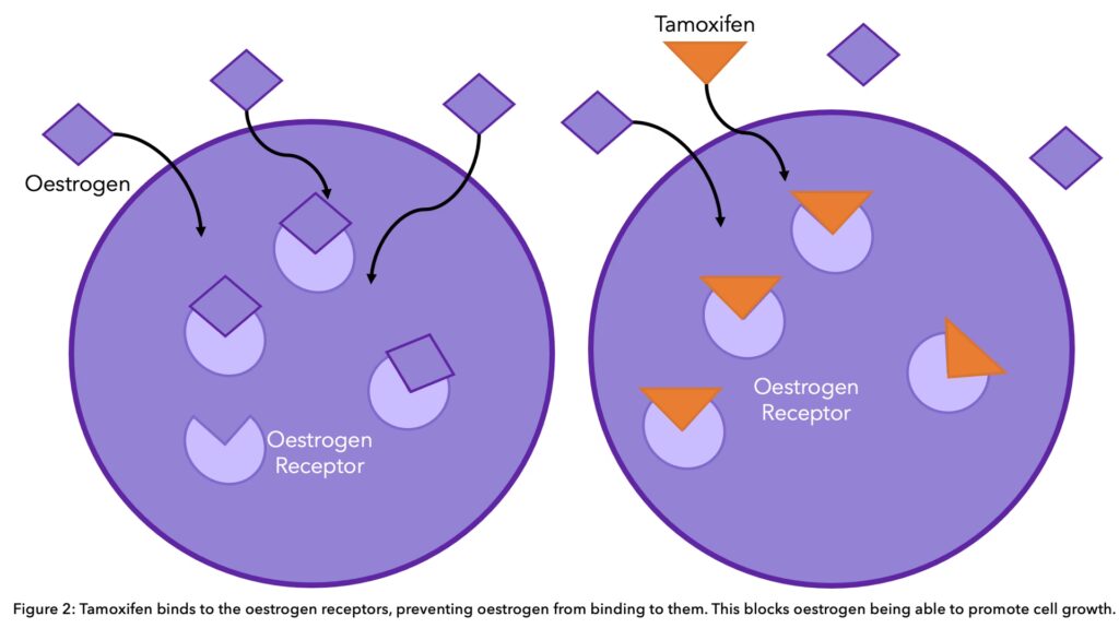 Tamoxifen er en af de ældste og mest anvendte former for hormonbehandling. Det virker ved at blokere østrogenreceptorerne på brystkræftcellerne. Man kan tænke på det som at sætte en forkert nøgle i låsen, så den rigtige nøgle (østrogen) ikke kan komme til. Tamoxifen kan bruges af både præ- og postmenopausale kvinder. Behandlingen gives som en daglig pille og varer typisk i 5 til 10 år.