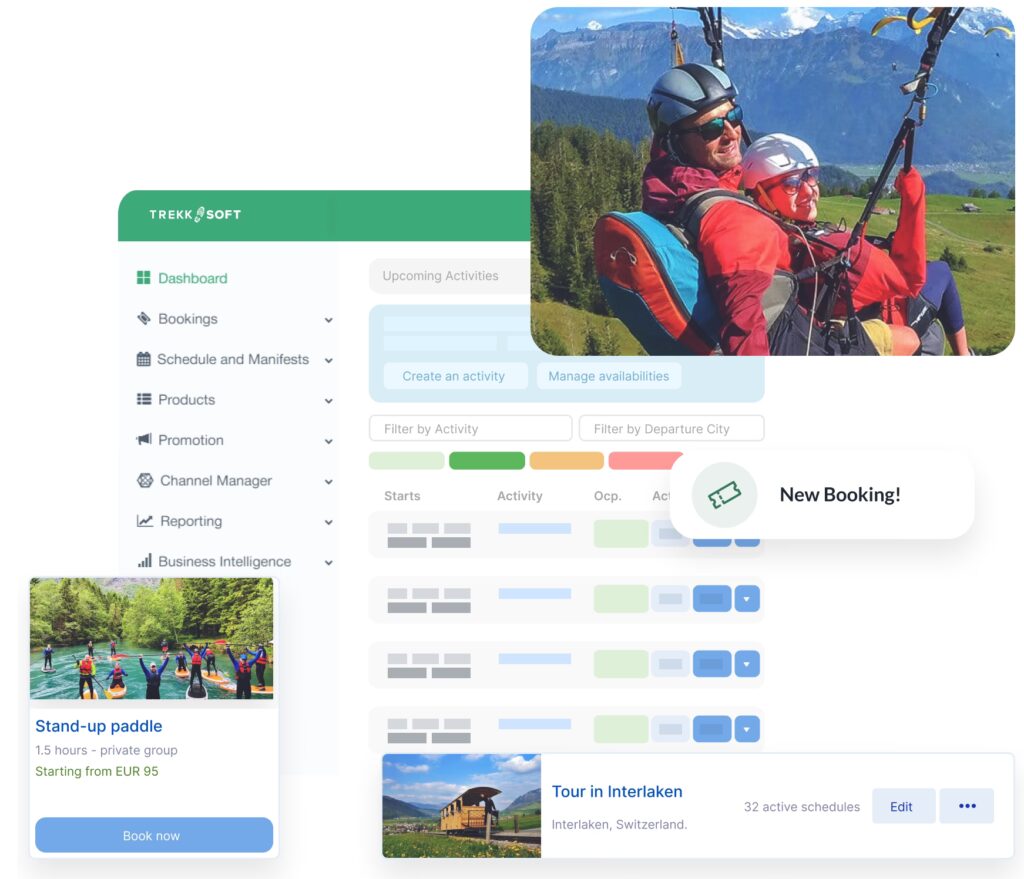 - Oplevelsesstyring: Et intuitivt værktøj til at opbygge detaljerede turoplæg, administrere prissætning (inklusive differentierede priser og dynamisk prissætning) og fastsætte regler for tilgængelighed.