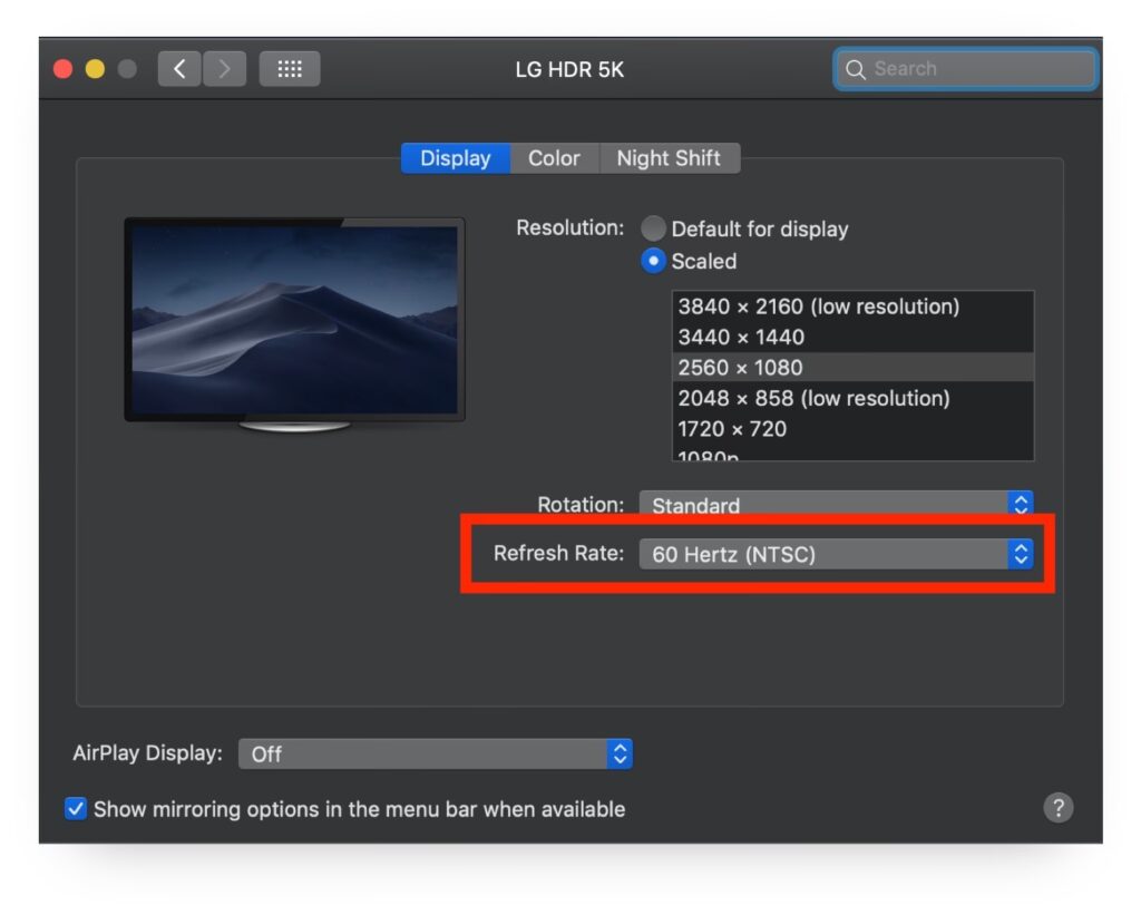 - Klik på menuen og vælg den ønskede, højere opdateringshastighed.