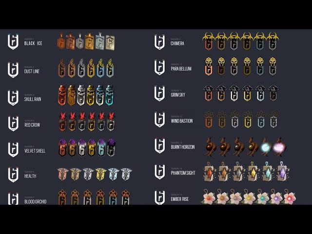 | Sådan opnås den | Opnåede Diamond-rang i Y1S1 | Tildeles Ubisoft-udviklere | Deltog i/så det første Six Invitational i 2017 |