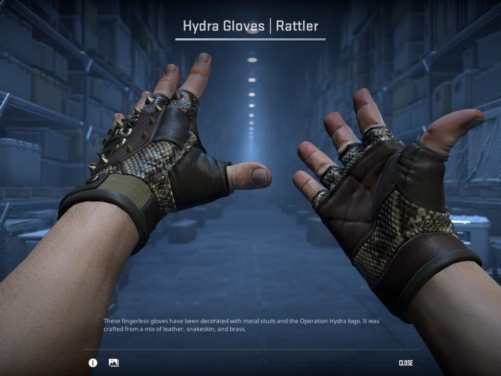 Hydra Handsker blev introduceret til CS:GO som en del af 'Operation Hydra' i maj 2017. Operationen var en stor begivenhed i spillets historie, der bragte nye spiltilstande, kort og selvfølgelig den eftertragtede Hydra Case. Handskerne var en af de sjældneste genstande, man kunne få fra denne kasse, hvilket fra starten cementerede deres status som et luksuriøst og eksklusivt item. Designet er markant og let genkendeligt. De er fingerløse, hvilket giver dem et råt og taktisk look. Overfladen er prydet med adskillige metalnitter, der giver et rebelsk og pansret udtryk. Det mest iøjnefaldende element er dog Operation Hydra-logoet – en slange med flere hoveder – som er prominent placeret på håndryggen. Denne kombination af materialer og symbolik gør dem til et stærkt visuelt statement i spillet og fortæller en historie om en specifik æra i CS:GO's udvikling.