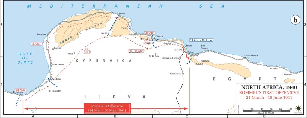 Hvad tyskerne og italienerne ikke vidste, var, at den britiske offensiv også havde nået sine grænser. Forsyningslinjerne var blevet faretruende lange, og tropperne, der havde kæmpet uafbrudt, var udmattede. Desuden havde den britiske overkommando i Mellemøsten, under ledelse af general Wavell, fået ordre på at omdirigere erfarne tropper til Grækenland for at imødegå en tysk invasion dér. De udmattede fronttropper blev derfor erstattet af friske, men uerfarne enheder. Briterne stoppede deres fremrykning ved El Agheila, men dette pusterum blev opfattet som en tøven af Aksemagterne, ikke som et tegn på svaghed.